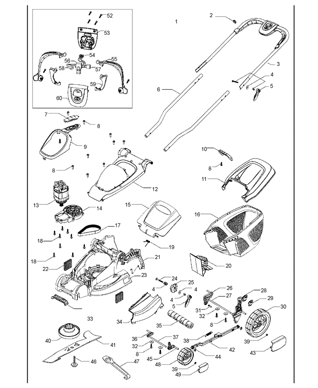 Zeichnung 1 Sollten Sie Fragen zu einem Ersatzteil von Flymo Rasenmäher MULTIMO 360 haben, können Sie uns gerne eine E-Mail (mit einem Foto vom Typenschild Ihres Gerätes) schreiben oder eine Ersatzteilanfrage stellen.