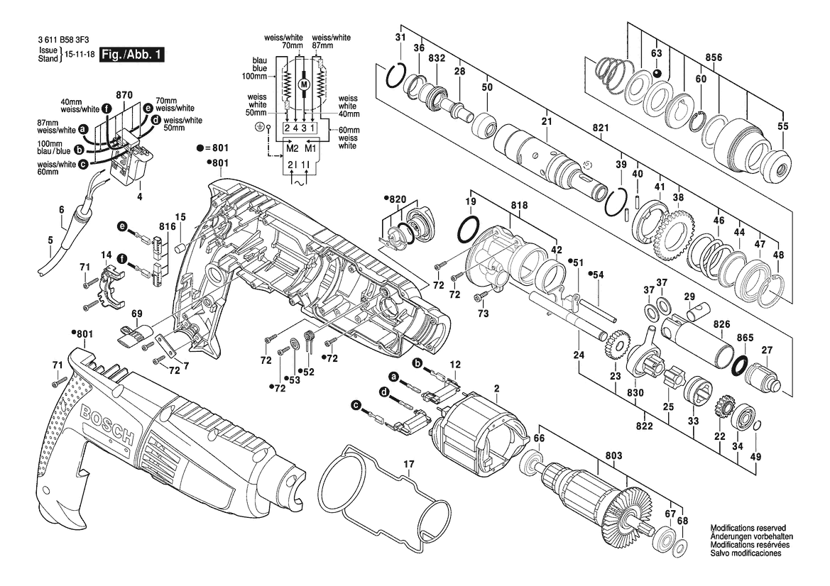 Ersatzteile für Bosch Hammerbohrmaschine GBH 200 | 220 V | 041 - IN (3 611 B58 3F3) Zeichnung 1