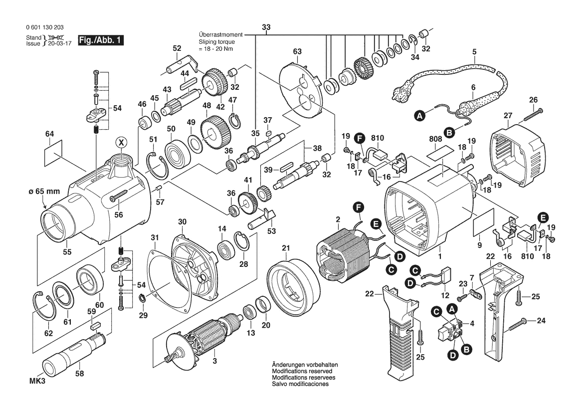 Ersatzteile für Bosch Bohrmaschine GBM 32-4 | 230 V | 001 - EU (0 601 130 203) Zeichnung 1