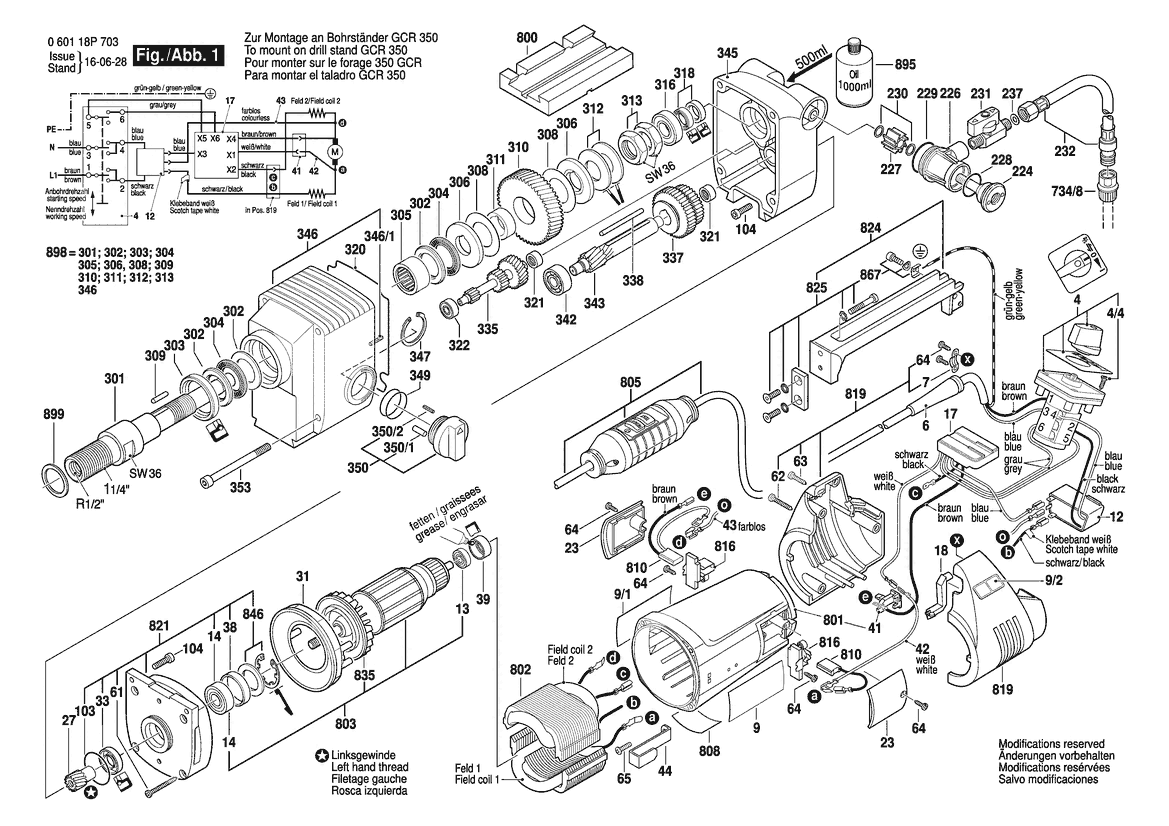 Ersatzteile für Bosch Diamantbohrmaschine GDB 2200 WE | 230 V | 011 - KR (0 601 18P 740) Zeichnung 1