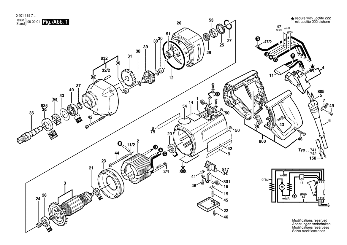 Zeichnung Sollten Sie Fragen zu einem Ersatzteil vom Bosch Bohrmaschine Bohrmaschine | 240 V | 027 - AU (0 601 119 737) haben, können Sie uns gerne eine E-Mail (mit einem Foto vom Typenschild Ihres Gerätes) schreiben oder eine Ersatzteilanfrage stellen.