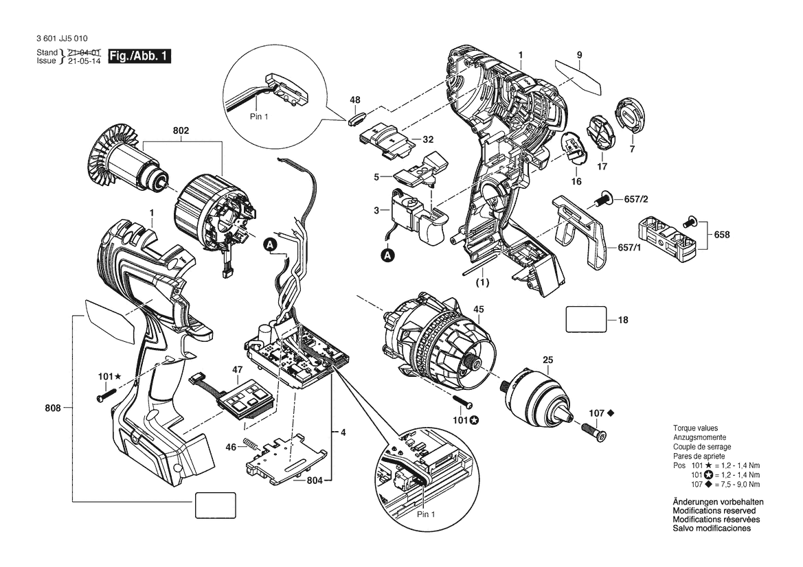 Ersatzteile für Bosch Akku-Bohrschrauber GSR 18V-1330 C | 18 V | 061 - US (3 601 JJ5 010) Zeichnung 1