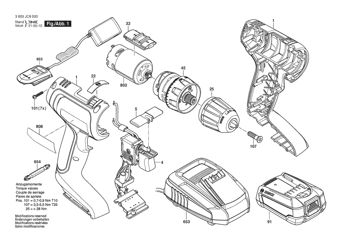 Ersatzteile für Bosch Akku-Bohrschrauber UniversallDrill 18 | 18 V | 027 - AU (3 603 JC8 040) Zeichnung 1