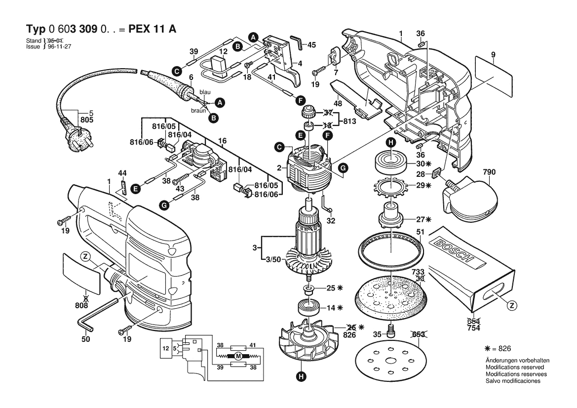 Zeichnung Sollten Sie Fragen zu einem Ersatzteil vom Bosch Exzenterschleifer PEX 11 A | 115 V | 025 - AMS (0 603 309 034) haben, können Sie uns gerne eine E-Mail (mit einem Foto vom Typenschild Ihres Gerätes) schreiben oder eine Ersatzteilanfrage stellen.