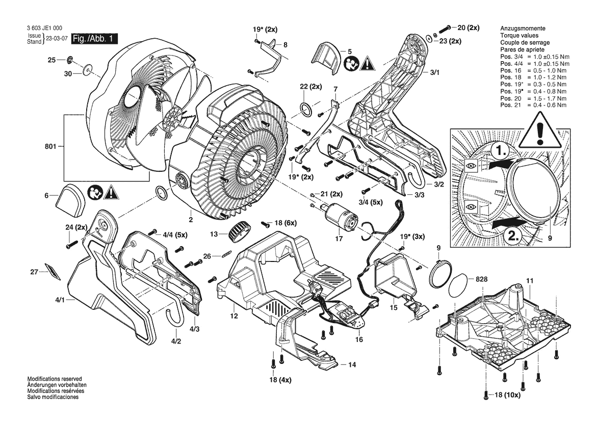 Zeichnung Sollten Sie Fragen zu einem Ersatzteil vom Bosch Akku-Ventilator UniversalFan 18V-1000 | 18 V (3 603 JE1 000) haben, können Sie uns gerne eine E-Mail (mit einem Foto vom Typenschild Ihres Gerätes) schreiben oder eine Ersatzteilanfrage stellen.