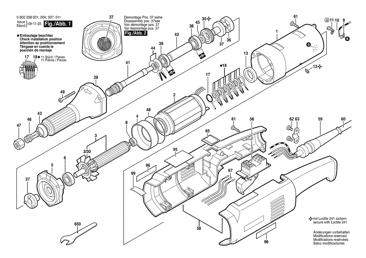 Zeichnung Sollten Sie Fragen zu einem Ersatzteil vom Bosch Geradschleifer GS26/2/50/270 (0 602 238 001) haben, können Sie uns gerne eine E-Mail (mit einem Foto vom Typenschild Ihres Gerätes) schreiben oder eine Ersatzteilanfrage stellen.