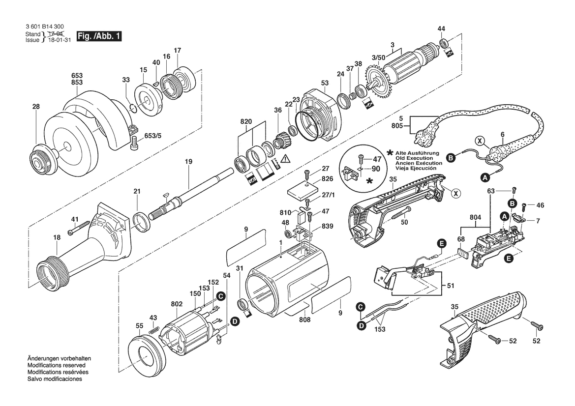 Zeichnung Sollten Sie Fragen zu einem Ersatzteil vom Bosch Geradschleifer GGS 8 H | 220 V | 027 - AU (3 601 B14 340) haben, können Sie uns gerne eine E-Mail (mit einem Foto vom Typenschild Ihres Gerätes) schreiben oder eine Ersatzteilanfrage stellen.