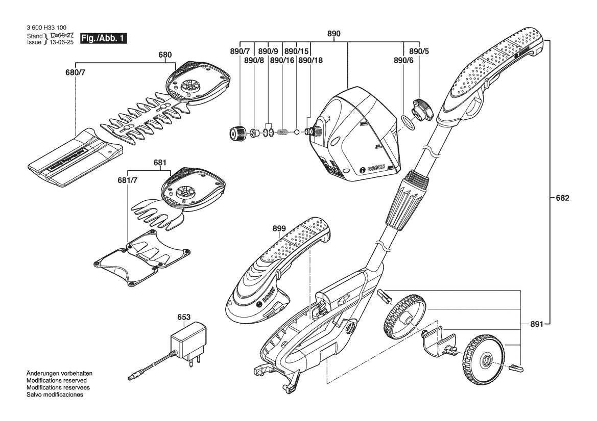Folgende Ersatzteile für Bosch Akku-Grasschere ISIO3 | 3.6 V | 006 - JP (3 600 H33 150) können Sie hier bestellen: