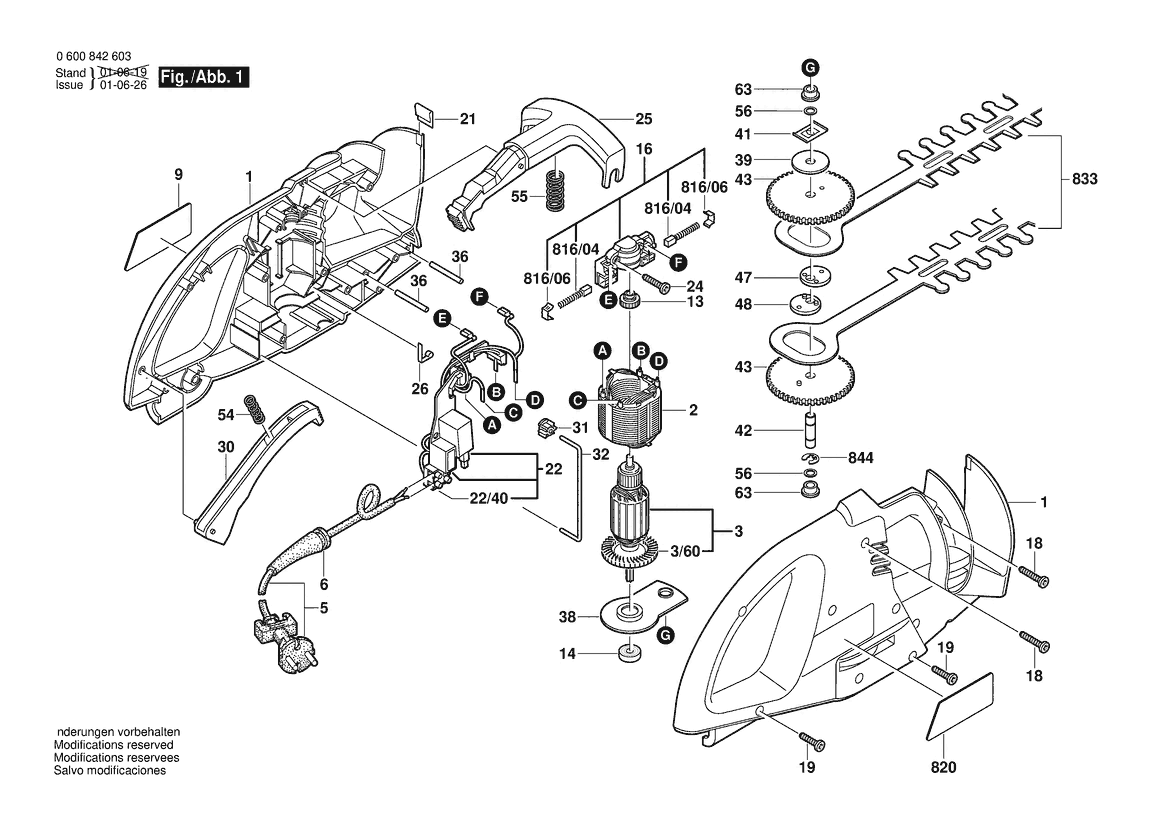 Ersatzteile für Bosch Heckenschere AHS 4/15 | 230 V | 004 - CH (0 600 842 632) Zeichnung 1
