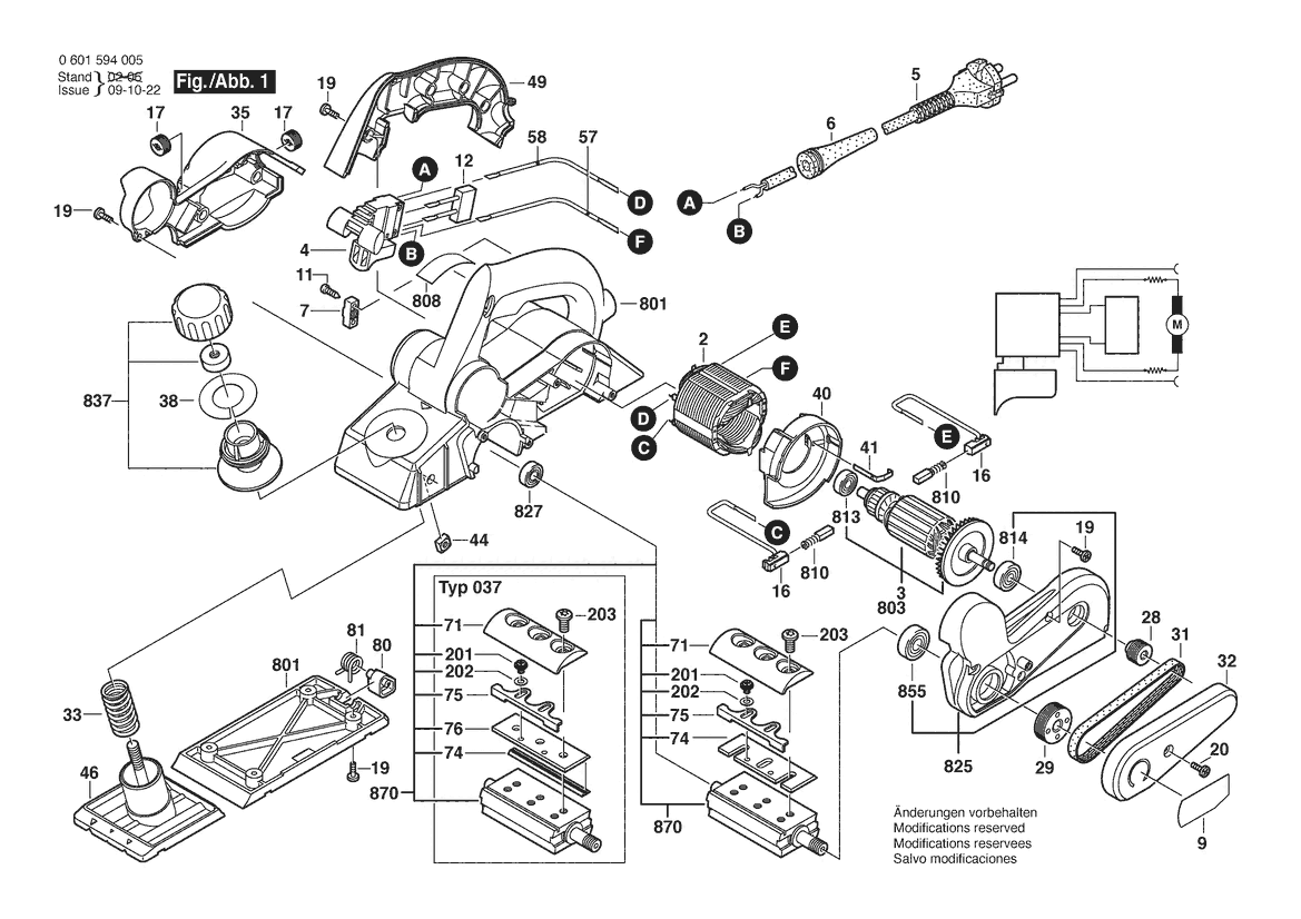 Ersatzteile für Bosch Handhobel GHO 10-82 | 240 V | 027 - AU (0 601 594 037) Zeichnung 1