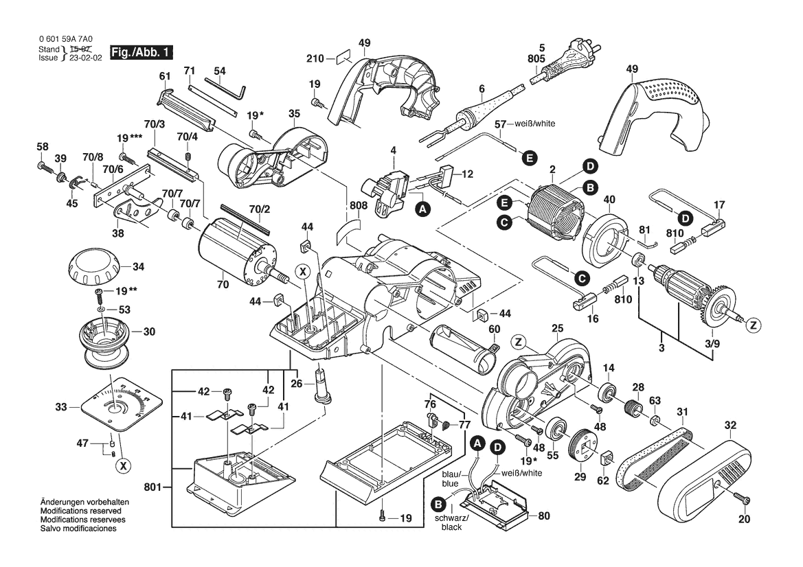 Zeichnung Sollten Sie Fragen zu einem Ersatzteil vom Bosch Handhobel GHO 40 - 82 C | 230 V | 001 - EU (0 601 59A 7A0) haben, können Sie uns gerne eine E-Mail (mit einem Foto vom Typenschild Ihres Gerätes) schreiben oder eine Ersatzteilanfrage stellen.