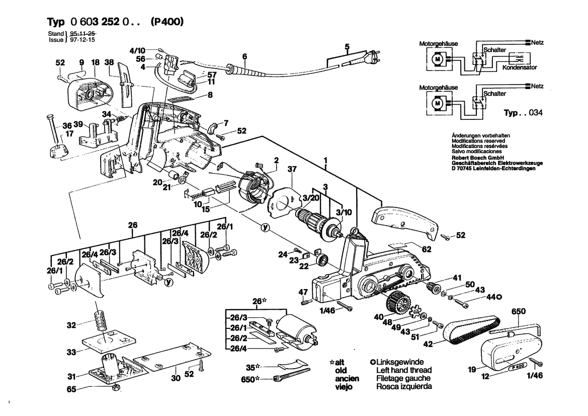 Folgende Ersatzteile für Bosch Handhobel Portable Planer | 110 V | 052 - RO (0 603 252 047) können Sie hier bestellen: