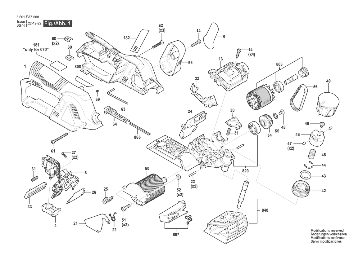 Zeichnung Sollten Sie Fragen zu einem Ersatzteil vom Bosch Hobel/Elektrowerkzeug GHO 12V-20 | 10.8 V | 011 - KR (3 601 EA7 0B0) haben, können Sie uns gerne eine E-Mail (mit einem Foto vom Typenschild Ihres Gerätes) schreiben oder eine Ersatzteilanfrage stellen.