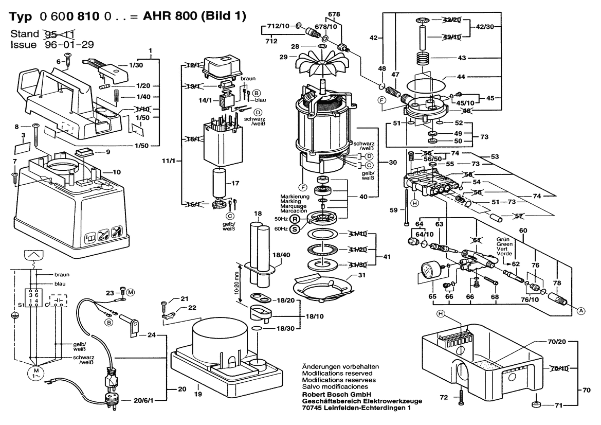 Ersatzteile für Bosch Hochdruckreiniger AHR 800 | 230 V | 034 - FI (0 600 810 063) Zeichnung 1