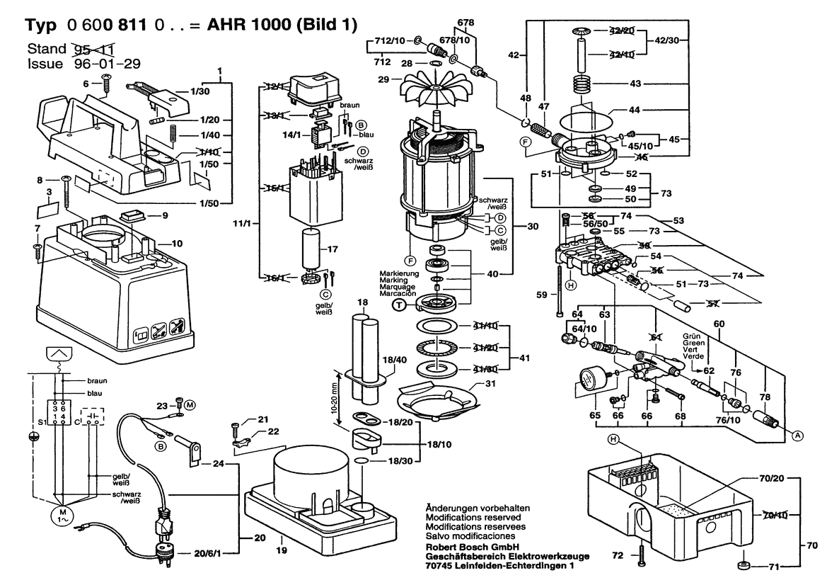 Ersatzteile für Bosch Hochdruckreiniger AHR 1000 | 240 V | 027 - AU (0 600 811 037) Zeichnung 1