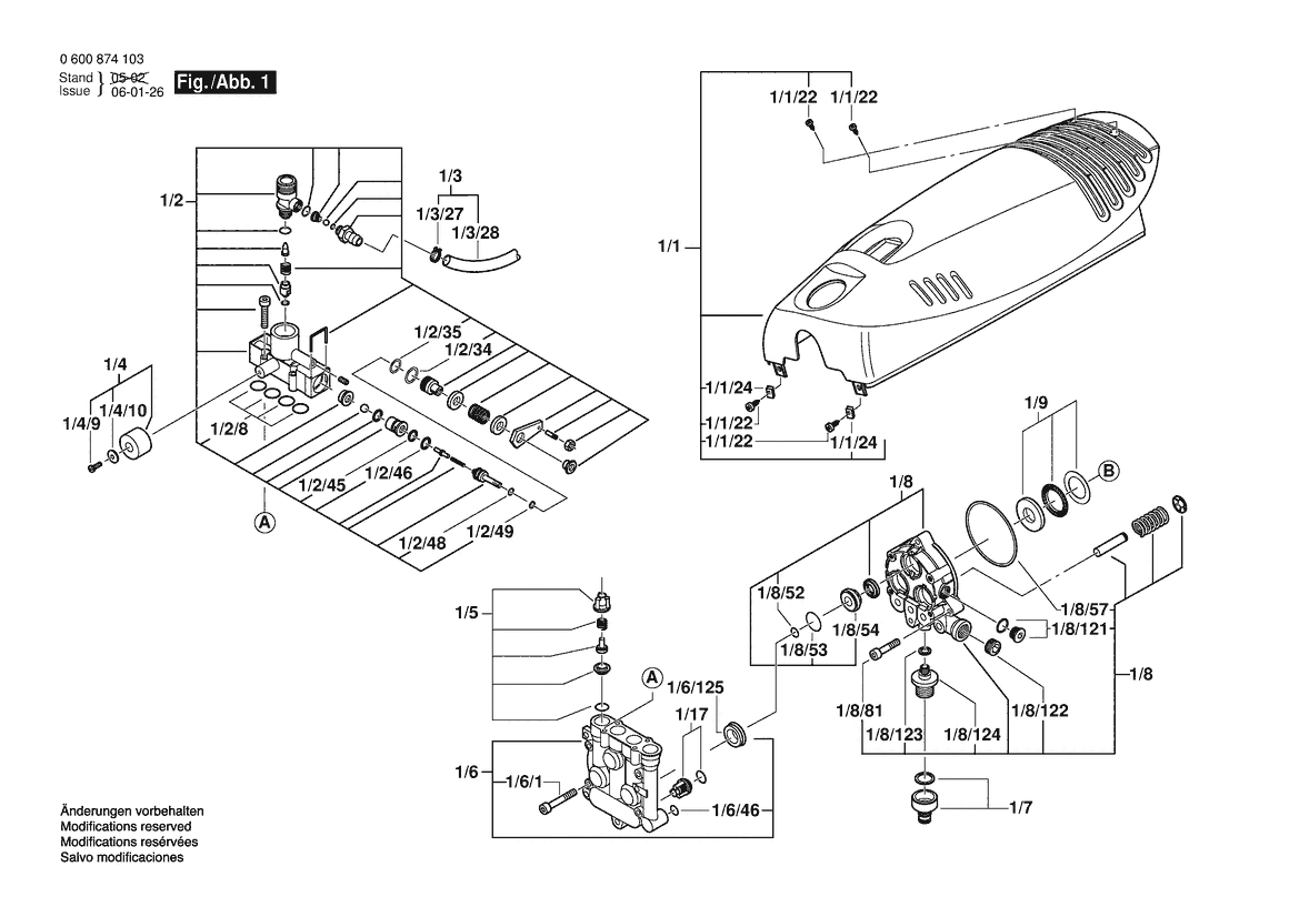 Ersatzteile für Bosch Hochdruckreiniger AQUATAK 1350 | 230 V | 036 - GB (0 600 874 142) Zeichnung 1