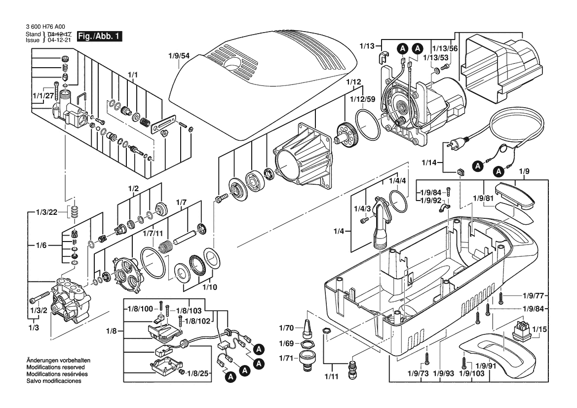 Ersatzteile für Bosch Hochdruckreiniger AQUATAK 100 | 230 V | 004 - CH (3 600 H76 A30) Zeichnung 1