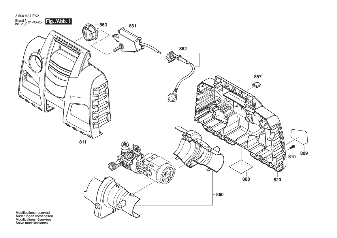 Ersatzteile für Bosch Hochdruckreiniger EasyAquatak 100 Home | 230 V | 020 - MY (3 600 HA7 EL3) Zeichnung 1
