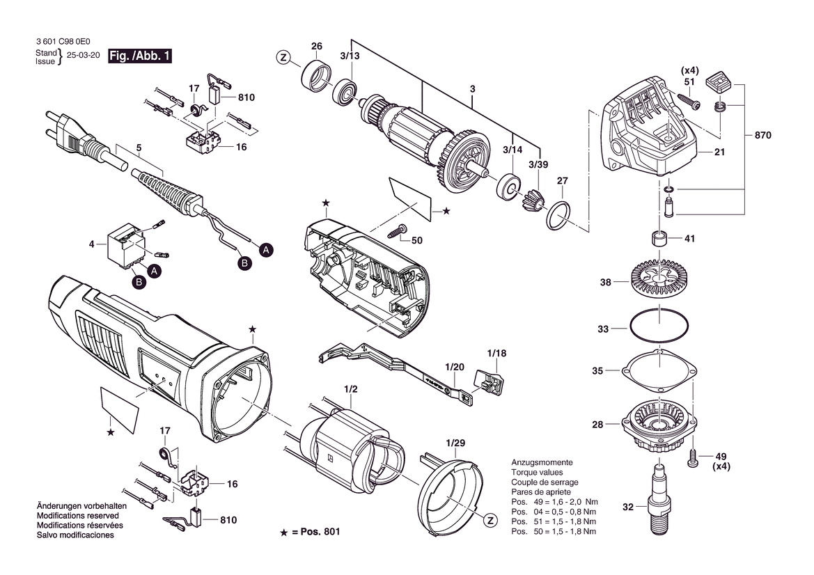 Zeichnung Sollten Sie Fragen zu einem Ersatzteil vom Bosch Winkelschleifer GWS 770 (3 601 C98 0G1) haben, können Sie uns gerne eine E-Mail (mit einem Foto vom Typenschild Ihres Gerätes) schreiben oder eine Ersatzteilanfrage stellen.