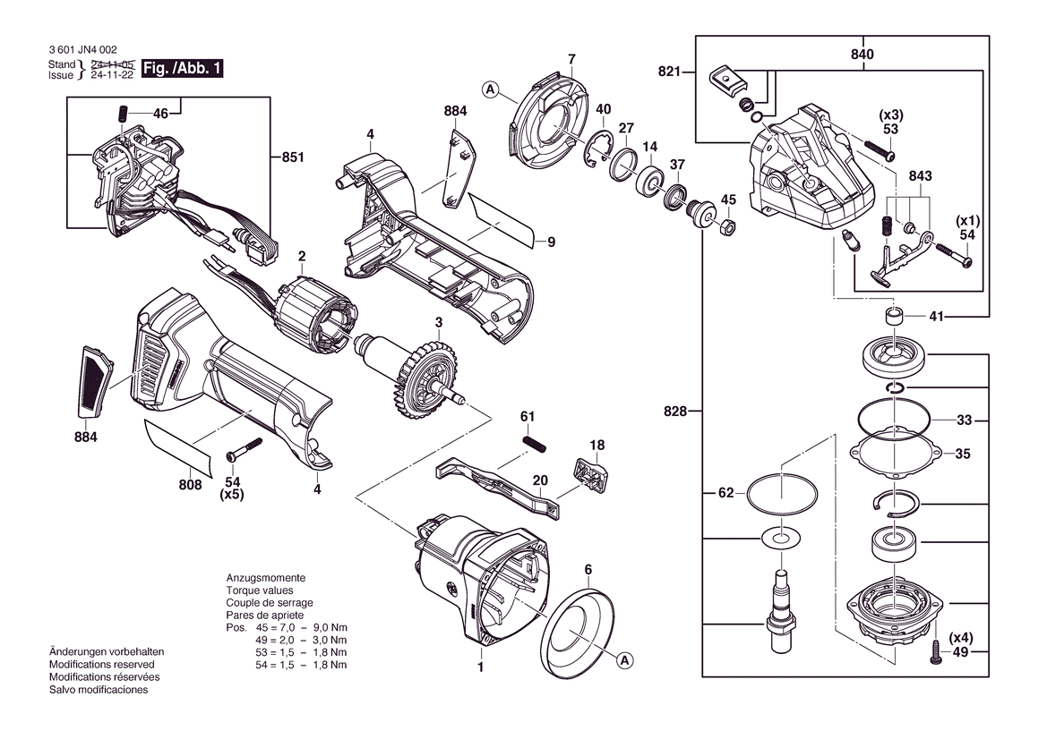 Ersatzteile für Bosch Akku-Winkelschleifer GWS 18V-11 S | 18 V | 000 - UNI (3 601 JN4 002) Zeichnung 1