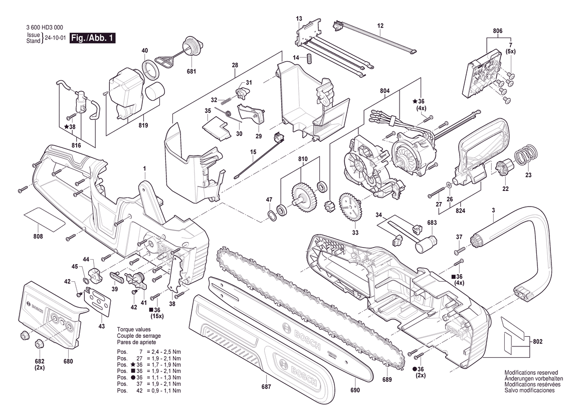 Ersatzteile für Bosch Kettensäge GKE 18V-40 | 18 V | 001 - EU (3 600 HD3 000) Zeichnung 1