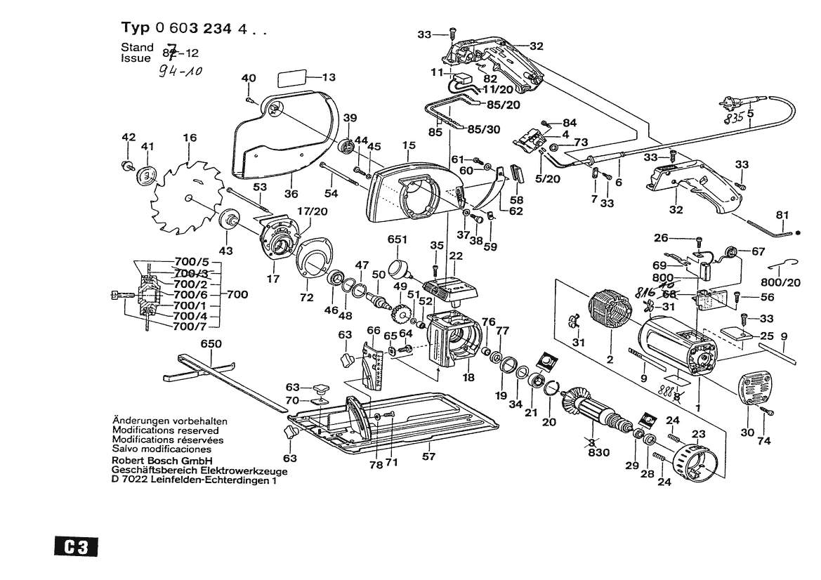 Folgende Ersatzteile für Bosch Handkreissäge NO DESCRIPTION | 220 V | 004 - CH (0 603 234 432) können Sie hier bestellen: