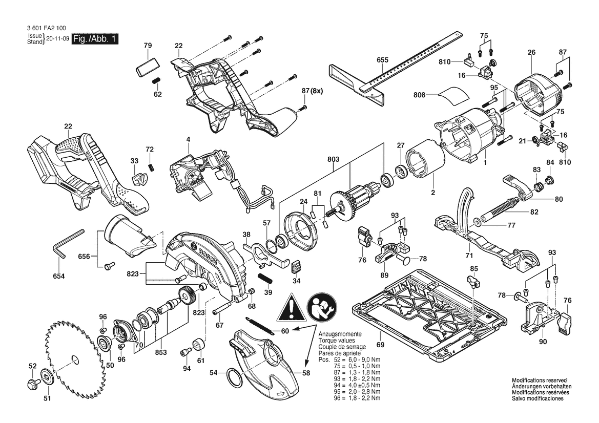 Ersatzteile für Bosch Akku-Kreissäge GKS 18V-57 G | 18 V | 001 - EU (3 601 FA2 100) Zeichnung 1
