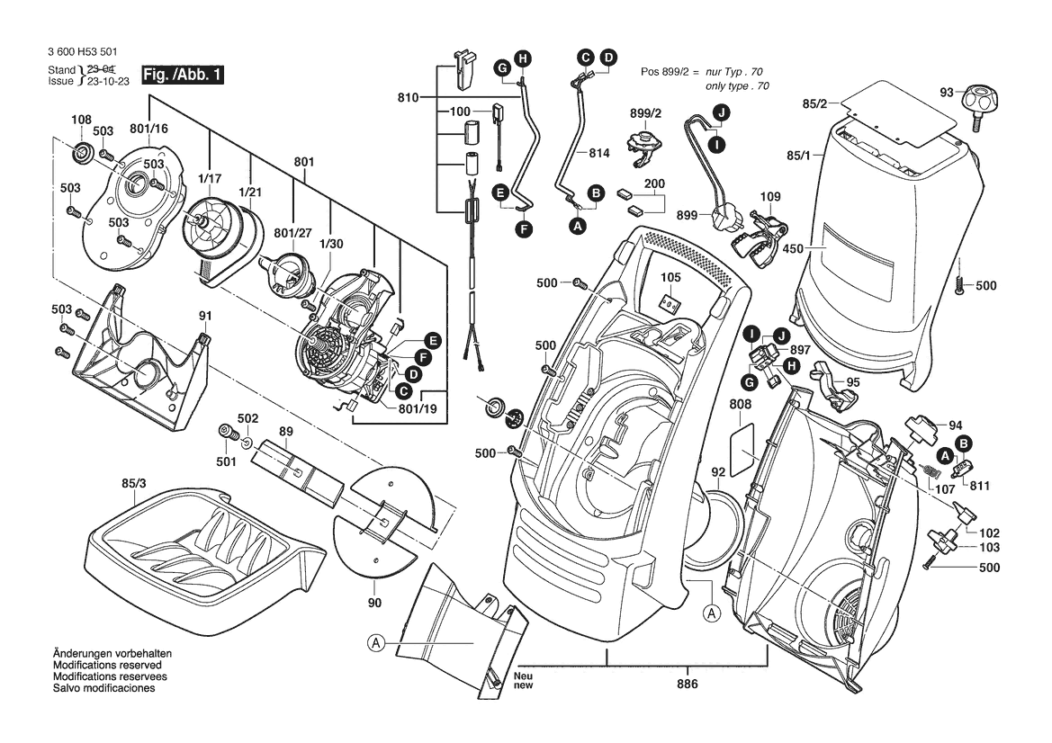 Zeichnung Sollten Sie Fragen zu einem Ersatzteil vom Bosch Häcksler AXT RAPID 2000 | 230 V | 001 - EU (3 600 H53 501) haben, können Sie uns gerne eine E-Mail (mit einem Foto vom Typenschild Ihres Gerätes) schreiben oder eine Ersatzteilanfrage stellen.