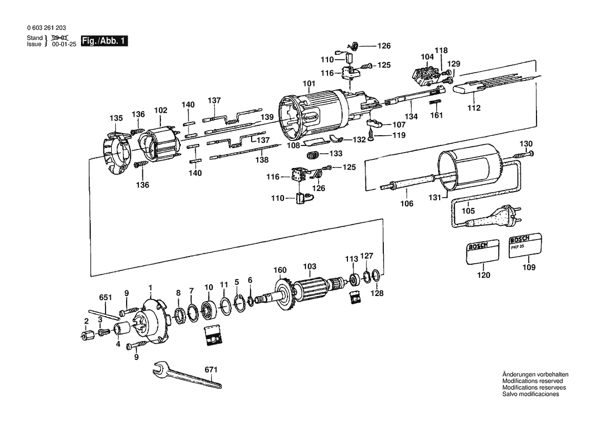 Ersatzteile für Bosch Gw-Kantenfräse PKF 25 | 220 V | 004 - CH (0 603 261 232) Zeichnung 1
