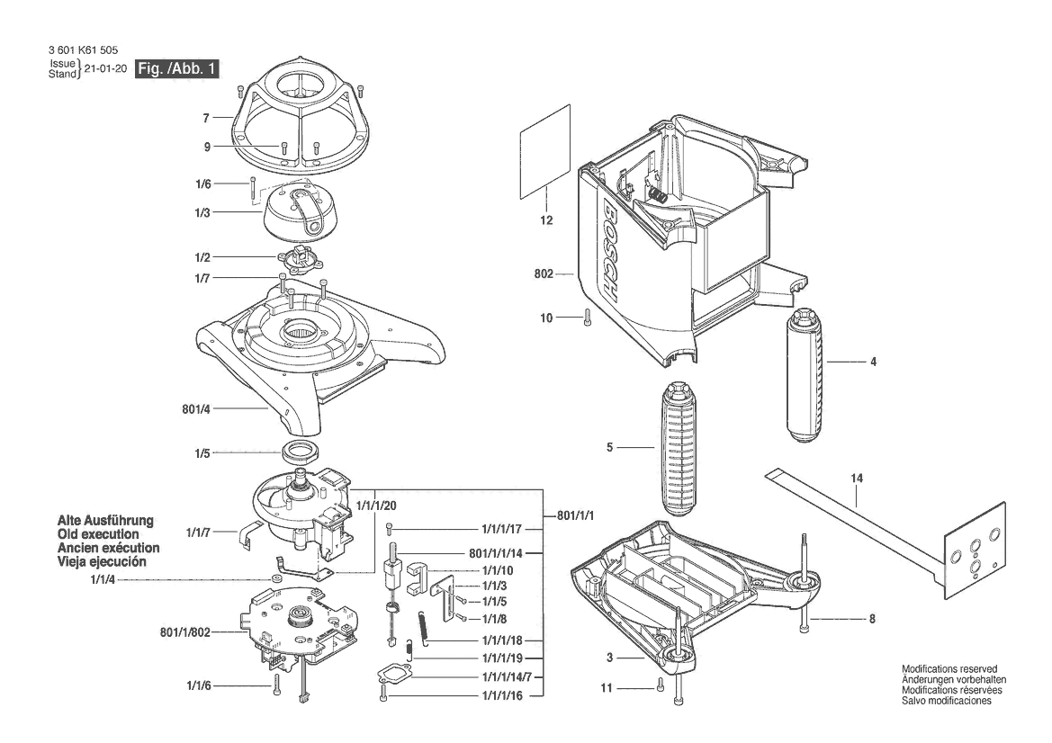 Ersatzteile für Bosch Baulaser GRL 250 HV | 061 - US (3 601 K61 602) Zeichnung 1