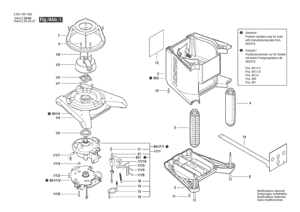 Ersatzteile für Bosch Baulaser GRL 300 HVG | 001 - EU (3 601 K61 700) Zeichnung 1