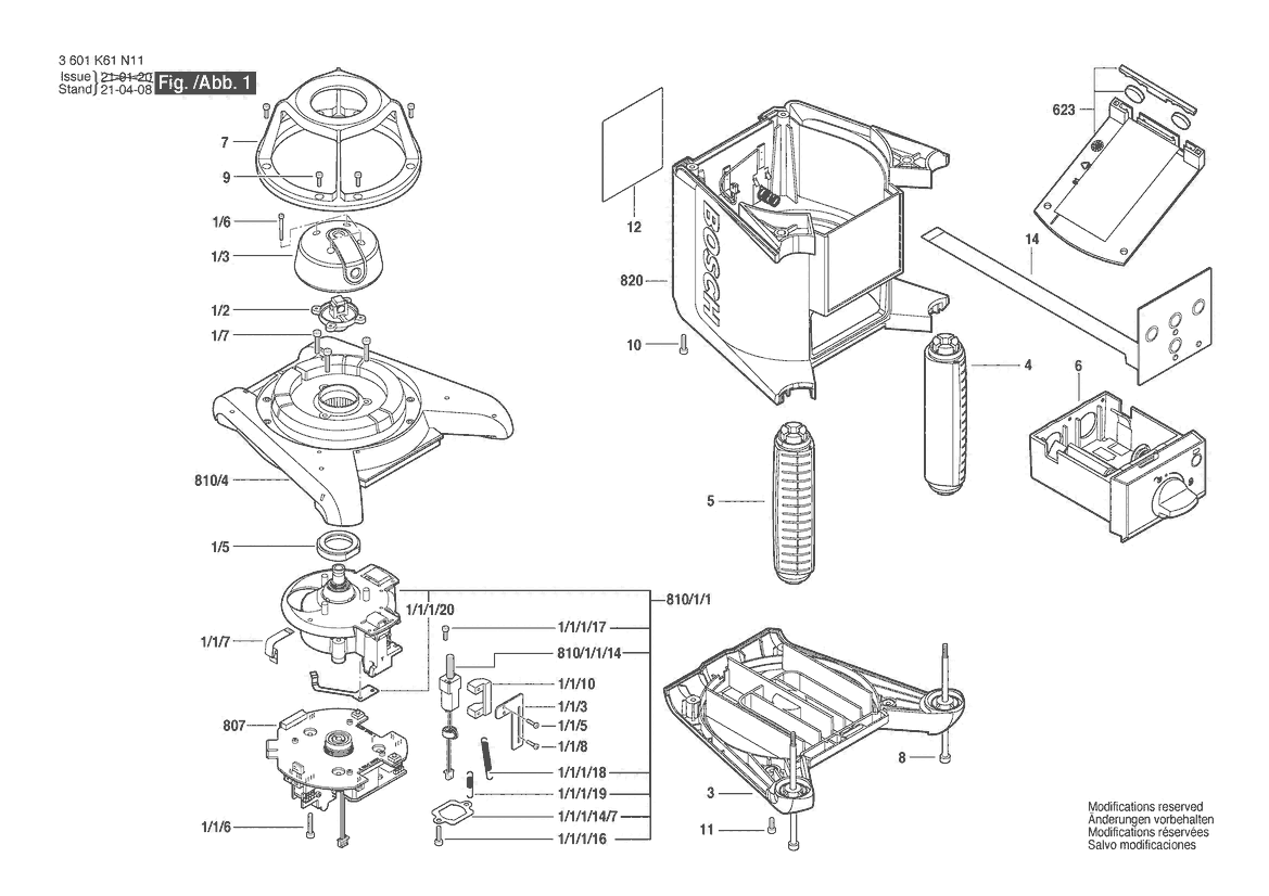 Ersatzteile für Bosch Baulaser GRL 1000-20HV | 061 - US (3 601 K61 P11) Zeichnung 1
