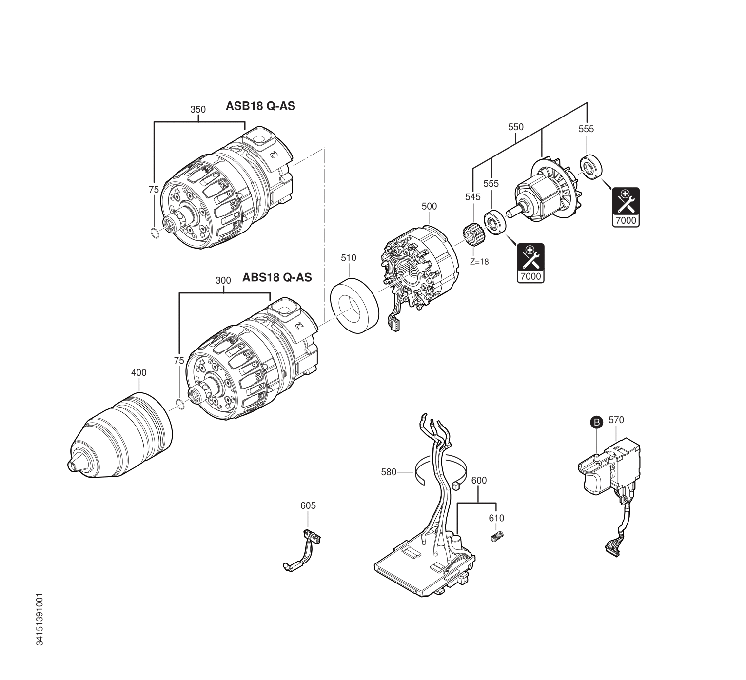Folgende Ersatzteile für Fein ASB18Q AS 71040700940 können Sie hier bestellen: