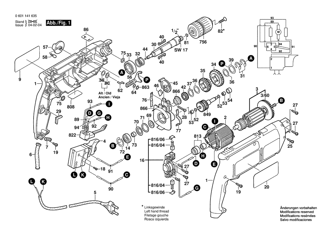 Zeichnung Sollten Sie Fragen zu einem Ersatzteil vom Bosch Schlagbohrmaschine B 6600 | 120 V | 061 - US (0 601 141 635) haben, können Sie uns gerne eine E-Mail (mit einem Foto vom Typenschild Ihres Gerätes) schreiben oder eine Ersatzteilanfrage stellen.