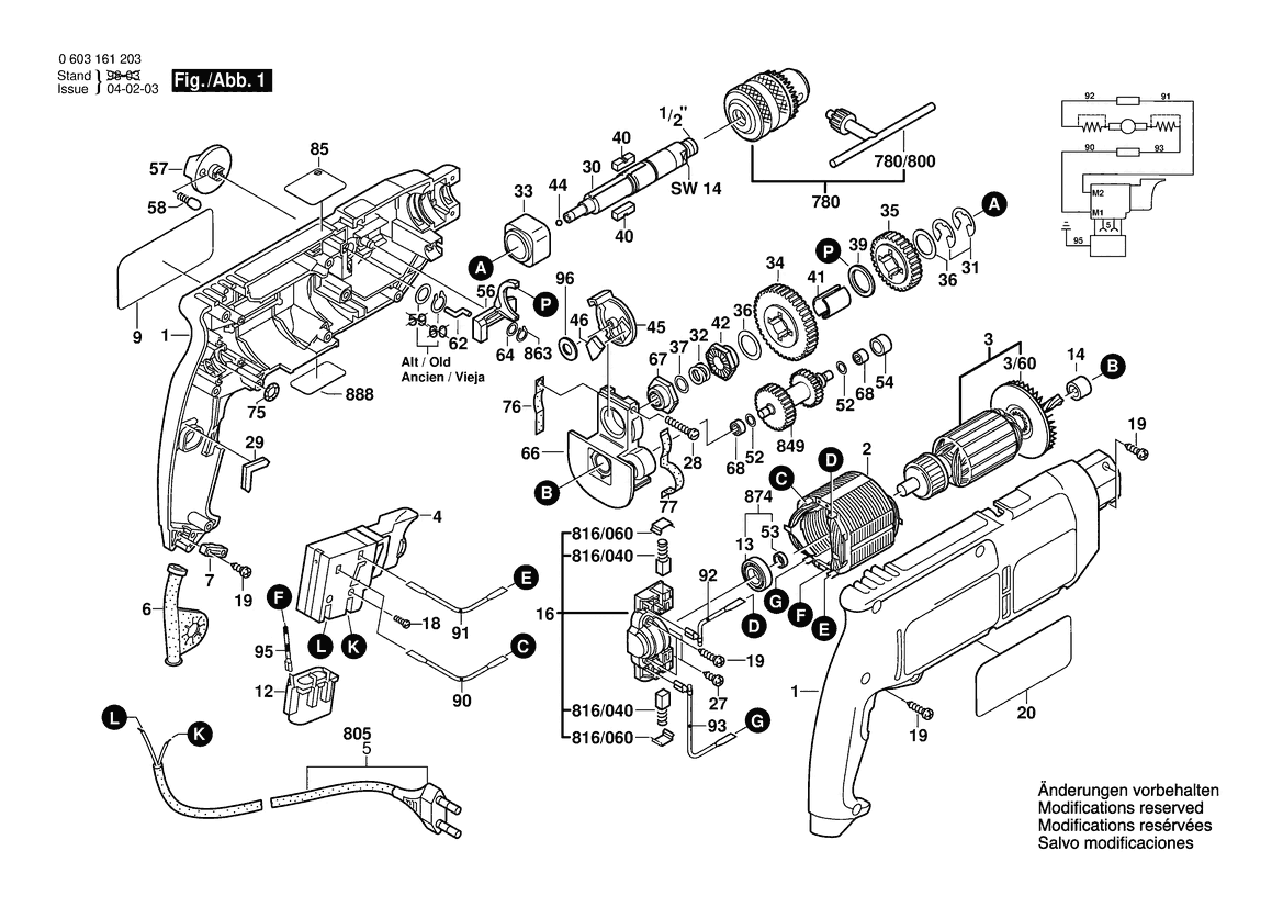 Ersatzteile für Bosch Schlagbohrmaschine PSB 680-2 | 230 V | 001 - EU (0 603 161 203)