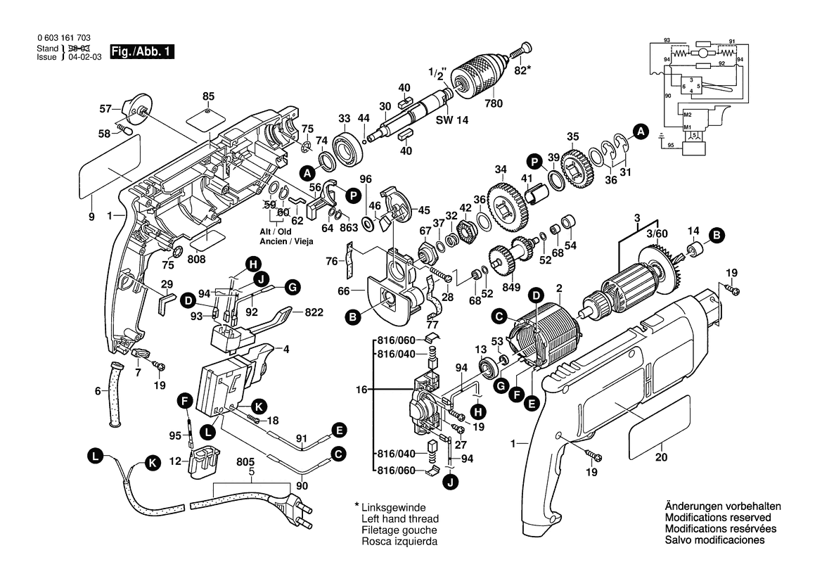Zeichnung Sollten Sie Fragen zu einem Ersatzteil vom Bosch Schlagbohrmaschine PSB 680-2 | 230 V (0 603 161 732) haben, können Sie uns gerne eine E-Mail (mit einem Foto vom Typenschild Ihres Gerätes) schreiben oder eine Ersatzteilanfrage stellen.