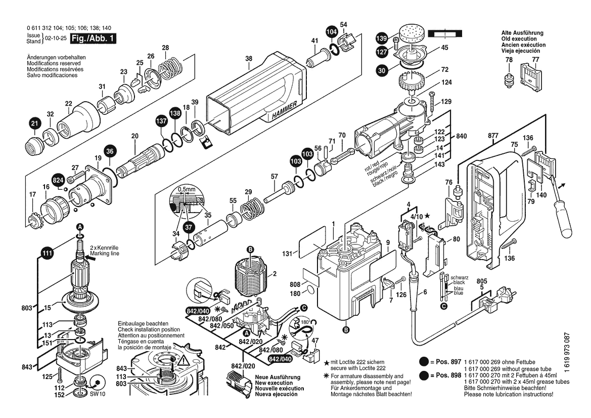 Zeichnung Sollten Sie Fragen zu einem Ersatzteil vom Bosch Schlaghammer GSH 4 | 115 V | 012 - TW (0 611 312 105) haben, können Sie uns gerne eine E-Mail (mit einem Foto vom Typenschild Ihres Gerätes) schreiben oder eine Ersatzteilanfrage stellen.