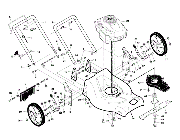 Folgende Ersatzteile für McCulloch Rasenmäher M53-650 CMDWA Bj. ab Mär 2008 aus der Zeichnung 1 können Sie hier bestellen: