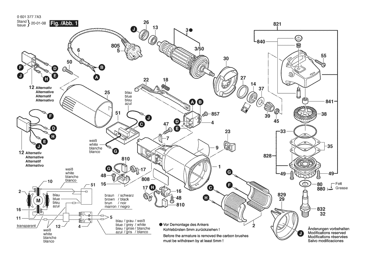 Zeichnung Sollten Sie Fragen zu einem Ersatzteil vom Bosch Winkelschleifer GWS 8-125 C | 240 V | 027 - AU (0 601 377 7D7) haben, können Sie uns gerne eine E-Mail (mit einem Foto vom Typenschild Ihres Gerätes) schreiben oder eine Ersatzteilanfrage stellen.