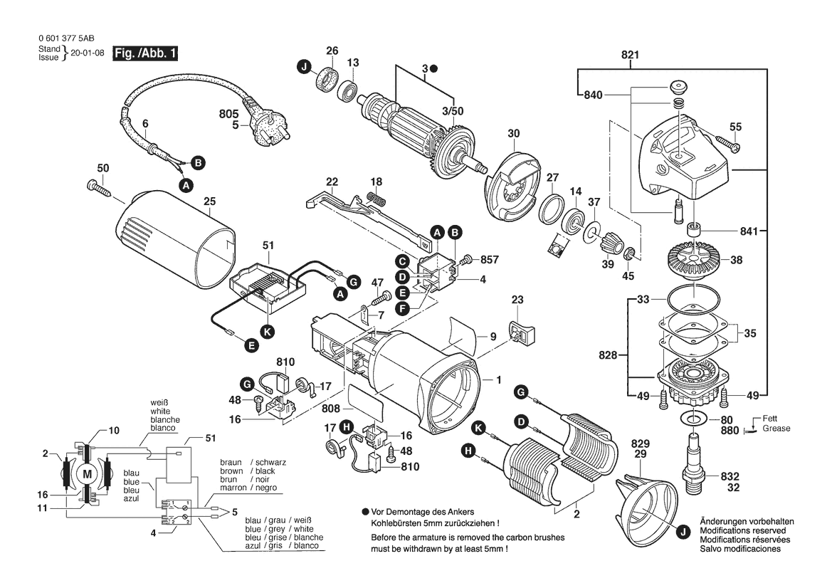 Zeichnung Sollten Sie Fragen zu einem Ersatzteil vom Bosch Winkelschleifer GWS 850 CE | 230 V | 001 - EU (0 601 378 7AC) haben, können Sie uns gerne eine E-Mail (mit einem Foto vom Typenschild Ihres Gerätes) schreiben oder eine Ersatzteilanfrage stellen.