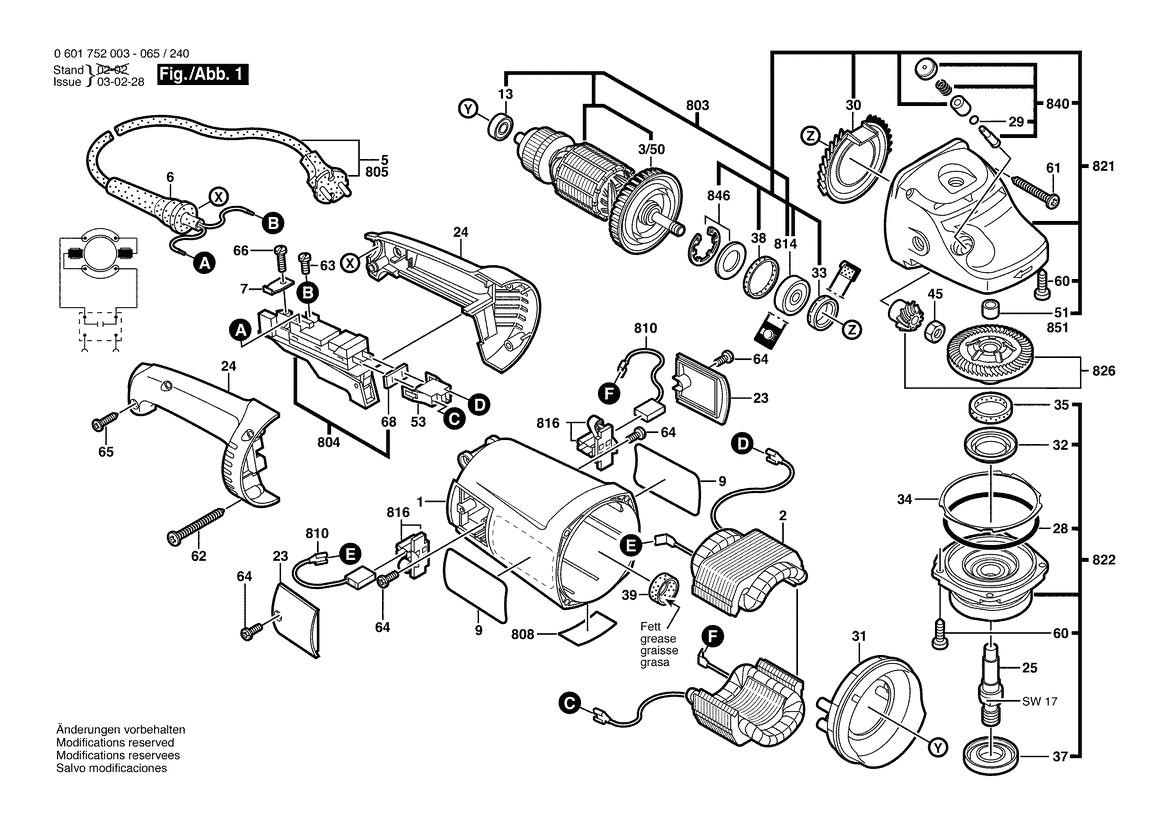 Zeichnung Sollten Sie Fragen zu einem Ersatzteil vom Bosch Winkelschleifer GWS 20-230 | 230 V | 003 - EEU (0 601 752 008) haben, können Sie uns gerne eine E-Mail (mit einem Foto vom Typenschild Ihres Gerätes) schreiben oder eine Ersatzteilanfrage stellen.