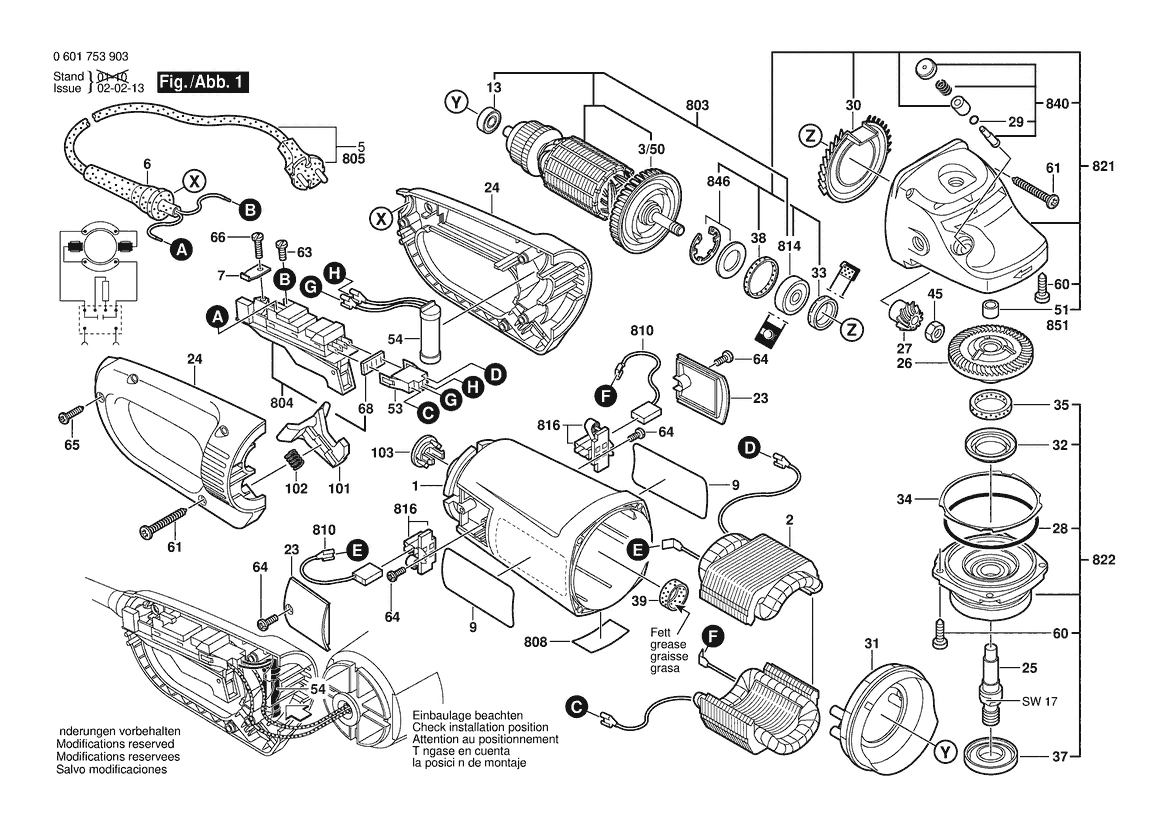 Zeichnung Sollten Sie Fragen zu einem Ersatzteil vom Bosch Winkelschleifer GWS 23-180 J | 230 V | 001 - EU (0 601 753 903) haben, können Sie uns gerne eine E-Mail (mit einem Foto vom Typenschild Ihres Gerätes) schreiben oder eine Ersatzteilanfrage stellen.