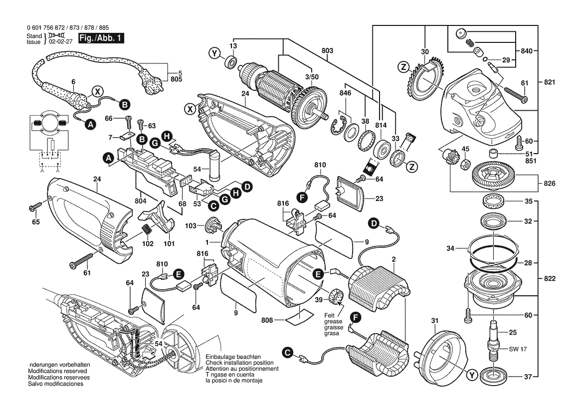 Folgende Ersatzteile für Bosch Winkelschleifer GWS 25-230 J | 230 V | 003 - EEU (0 601 756 878) können Sie hier bestellen: