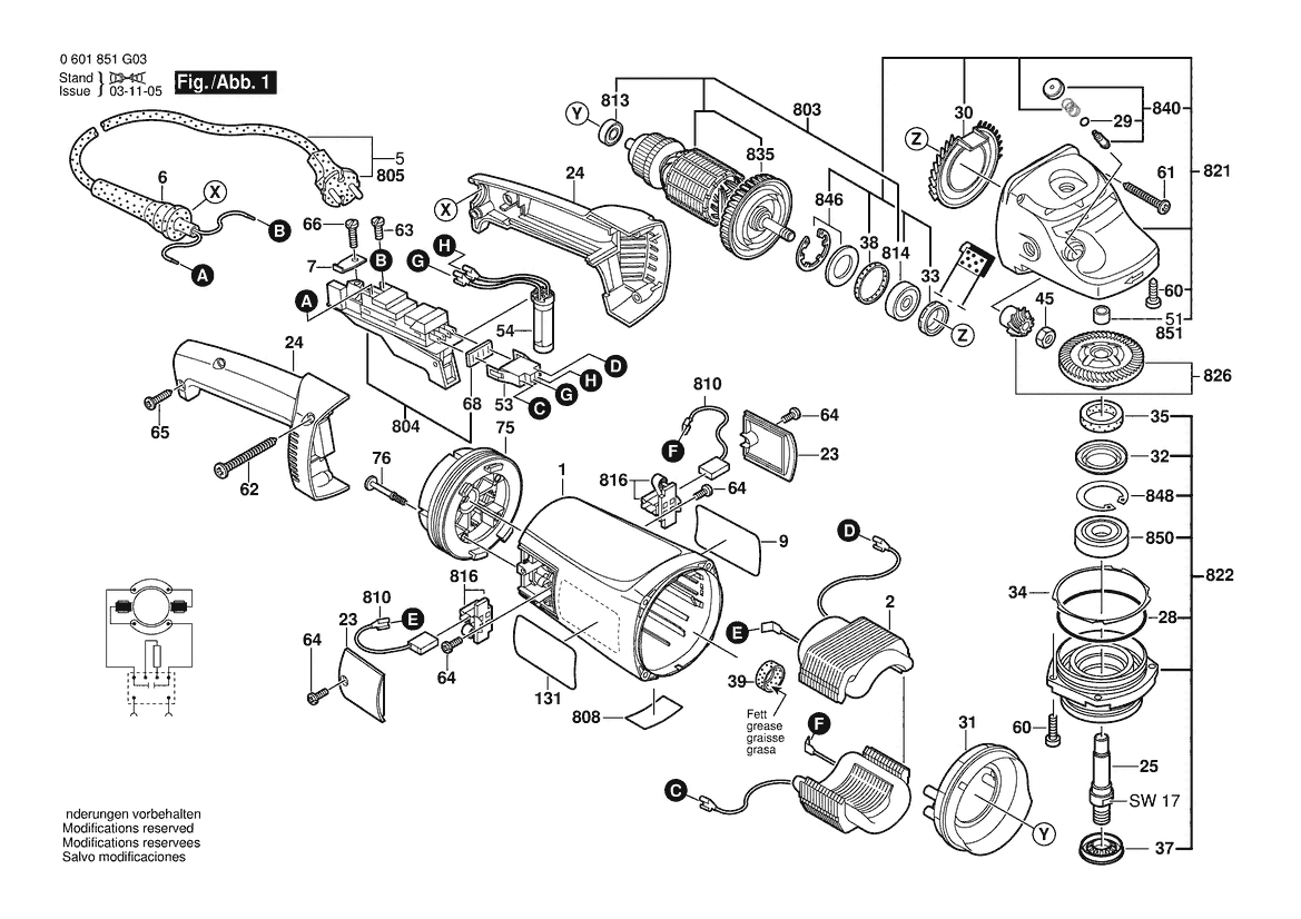 Zeichnung Sollten Sie Fragen zu einem Ersatzteil vom Bosch Winkelschleifer GWS 21-180 JHV | 230 V | 001 - EU (0 601 851 G03) haben, können Sie uns gerne eine E-Mail (mit einem Foto vom Typenschild Ihres Gerätes) schreiben oder eine Ersatzteilanfrage stellen.