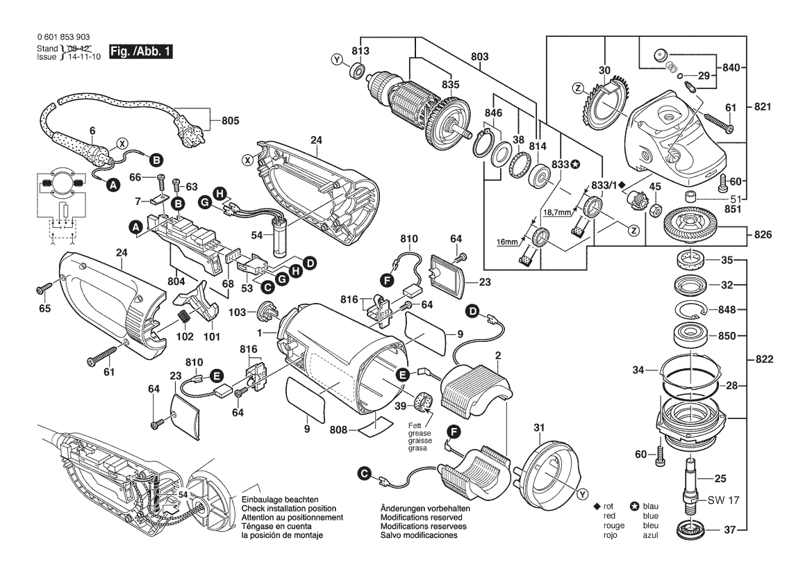 Zeichnung Sollten Sie Fragen zu einem Ersatzteil vom Bosch Winkelschleifer GWS 24-180 JB | 230 V | 001 - EU (0 601 853 903) haben, können Sie uns gerne eine E-Mail (mit einem Foto vom Typenschild Ihres Gerätes) schreiben oder eine Ersatzteilanfrage stellen.