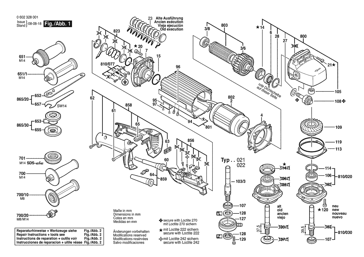 Ersatzteile für Bosch Flachkopfwinkelschleifer WINKELSCHL.GR8 (0 602 328 007)