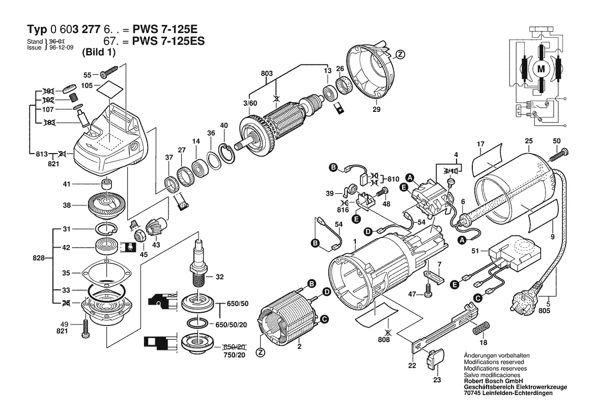 Ersatzteile für Bosch Winkelschleifer PWS 7-125 E | 230 V | 001 - EU (0 603 277 603)
