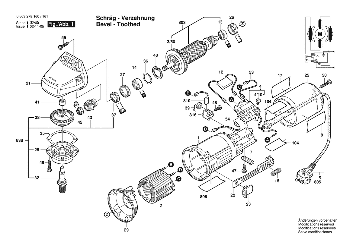 Zeichnung Sollten Sie Fragen zu einem Ersatzteil vom Bosch Winkelschleifer PWS 5-115 | 240 V | 036 - GB (0 603 278 161) haben, können Sie uns gerne eine E-Mail (mit einem Foto vom Typenschild Ihres Gerätes) schreiben oder eine Ersatzteilanfrage stellen.