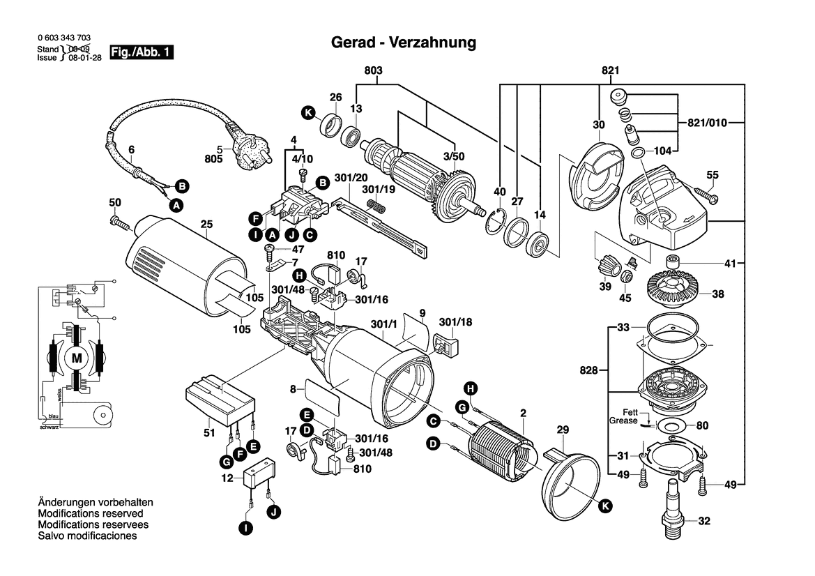 Zeichnung Sollten Sie Fragen zu einem Ersatzteil vom Bosch Winkelschleifer PWS 10-125 CE | 230 V | 017 - AR (0 603 343 715) haben, können Sie uns gerne eine E-Mail (mit einem Foto vom Typenschild Ihres Gerätes) schreiben oder eine Ersatzteilanfrage stellen.