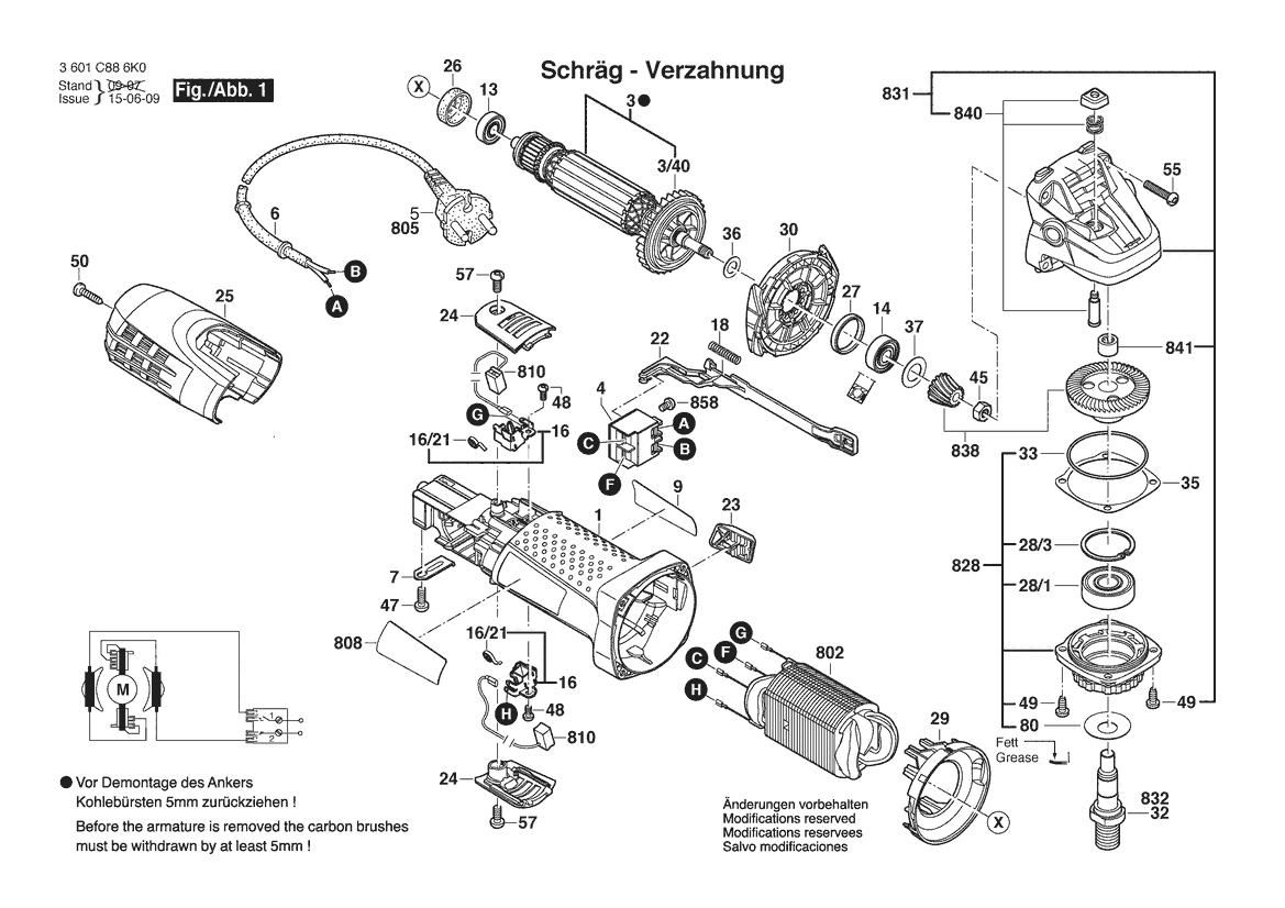 Folgende Ersatzteile für Bosch Winkelschleifer GWS 7-100 T | 230 V | 018 - HK (3 601 C88 6J0) können Sie hier bestellen: